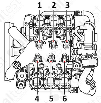- In 6-cylinder engines, in the two variants installed by Mercedes (inline engines 0M 906/926 LA and V engines OM 501/541 LA), bank 1 is formed by unit pumps 1, 2 and 3 and bank 2 is formed by unit pumps 4, 5 and 6.